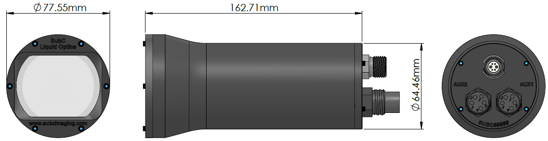 Rayfin MK2 Micro with a Blue Trail COB-116H0 connector and LiquidOpticsTM Small form factor, Ethernet HD video & comms, Digital Stills, HD and 4K, Data logging and DVR+ features