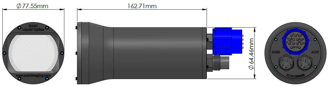 Rayfin MK2 Micro with a DBH13M connector and LiquidOpticsTM Small form factor, Ethernet HD video & comms, Digital Stills, HD and 4K, Data logging and DVR+ features