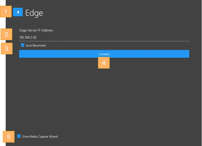 Unchecked → When the Connect button is clicked, the input video feed will start the video input without presenting the Media Capture Wizard.