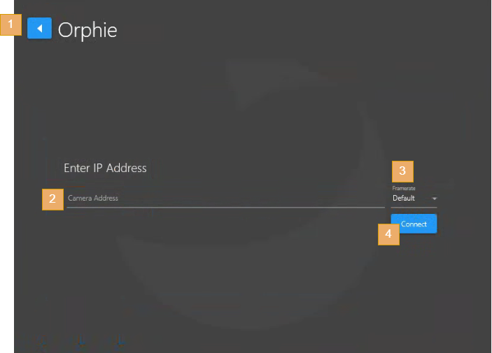 Connect to an Orphie camera through its IP Address to access its video as input to the DVR+O / SCI system Channels.