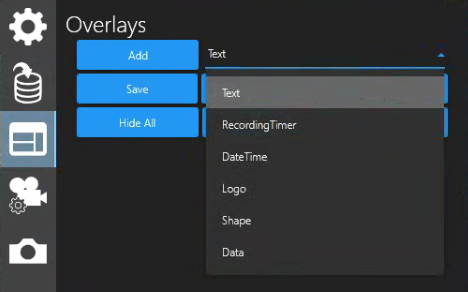 Overlay Types: Text, Recording Timer, Date/Time, Logo, Shape, Data (Environment Sensor Data, Data Input, such as water depth, temperature, etc.)