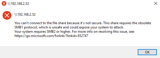 If when reviewing your saved image stills and videos, if you click on the Review Media button and receive the following Windows OS error, you’ll need to set up SMB 1.0 (Windows 10).